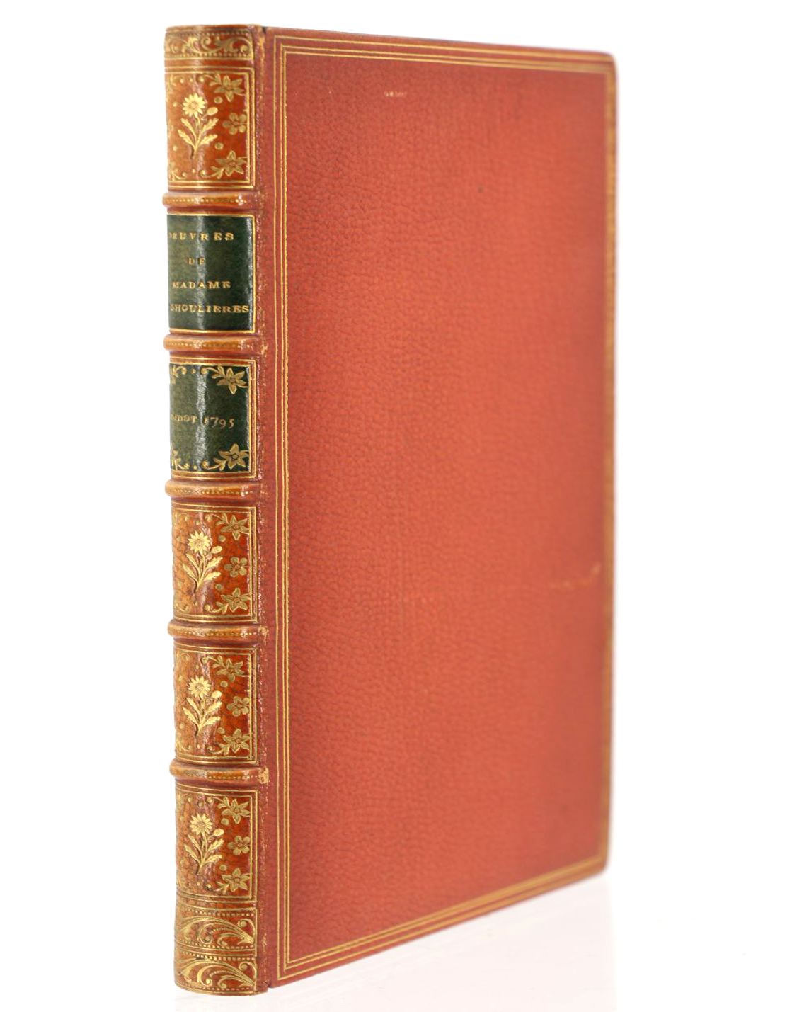 Reliure en demi chagrin marron, dos légèrement éclairci à cinq nerfs orné de filets noirs, date dorée en queue, plats de papier à la cuve, gardes et contreplats de papier peigné, couvertures conservées, tête dorée, reliure signée David.