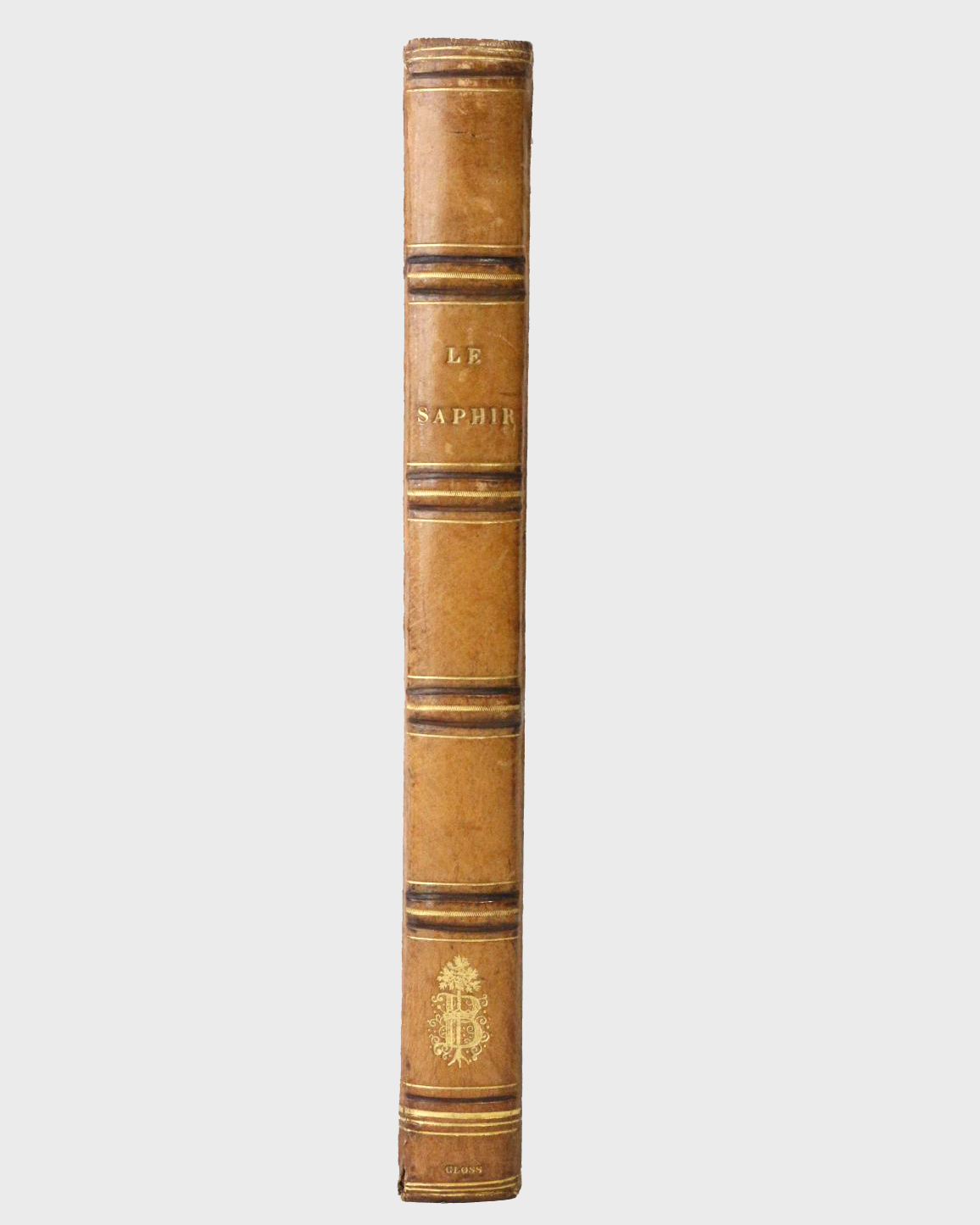 Reliure en demi veau glacé marron, dos légèrement passé à quatre fins nerfs orné de filets dorés et noirs, deux mors fendus en pieds, monogramme doré d'Alcide de Beauchesne en queue du dos, gardes et contreplats de papier à la cuve, reliure romantique de l'époque signée de Closs.