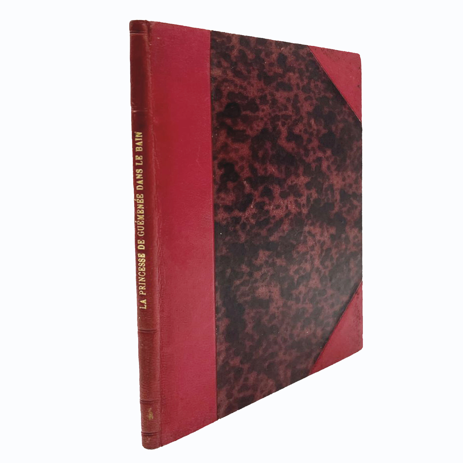 Reliure en demi chagrin rouge d'époque à coins signé Gaetan Ronner en haut de la page de garde. Dos lisse. Titre doré. Ensemble non rogné.