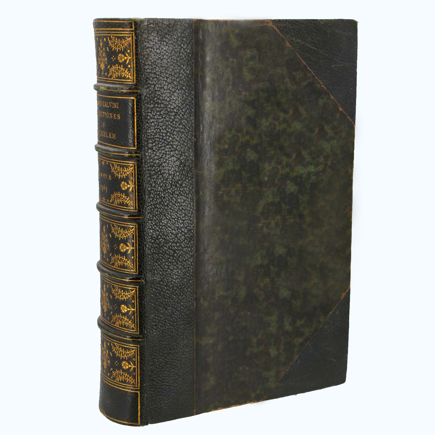 Très rare édition originale posthume de premier tirage (dit "type a") comportant bien toutes les particularités typographiques (capitales de la cinquième ligne du titre en romain, signature *ii. au lieu de *ij. et lettrines identiques en *ii et en p.1). Cette édition contient une préface de Théodore de Bèze, successeur de Calvin, sous forme d'exhortation au chef des Protestants de France, l'amiral Gaspard de Coligny. Une autre édition est parue quelques mois plus tard dans une traduction française chez le même éditeur.
