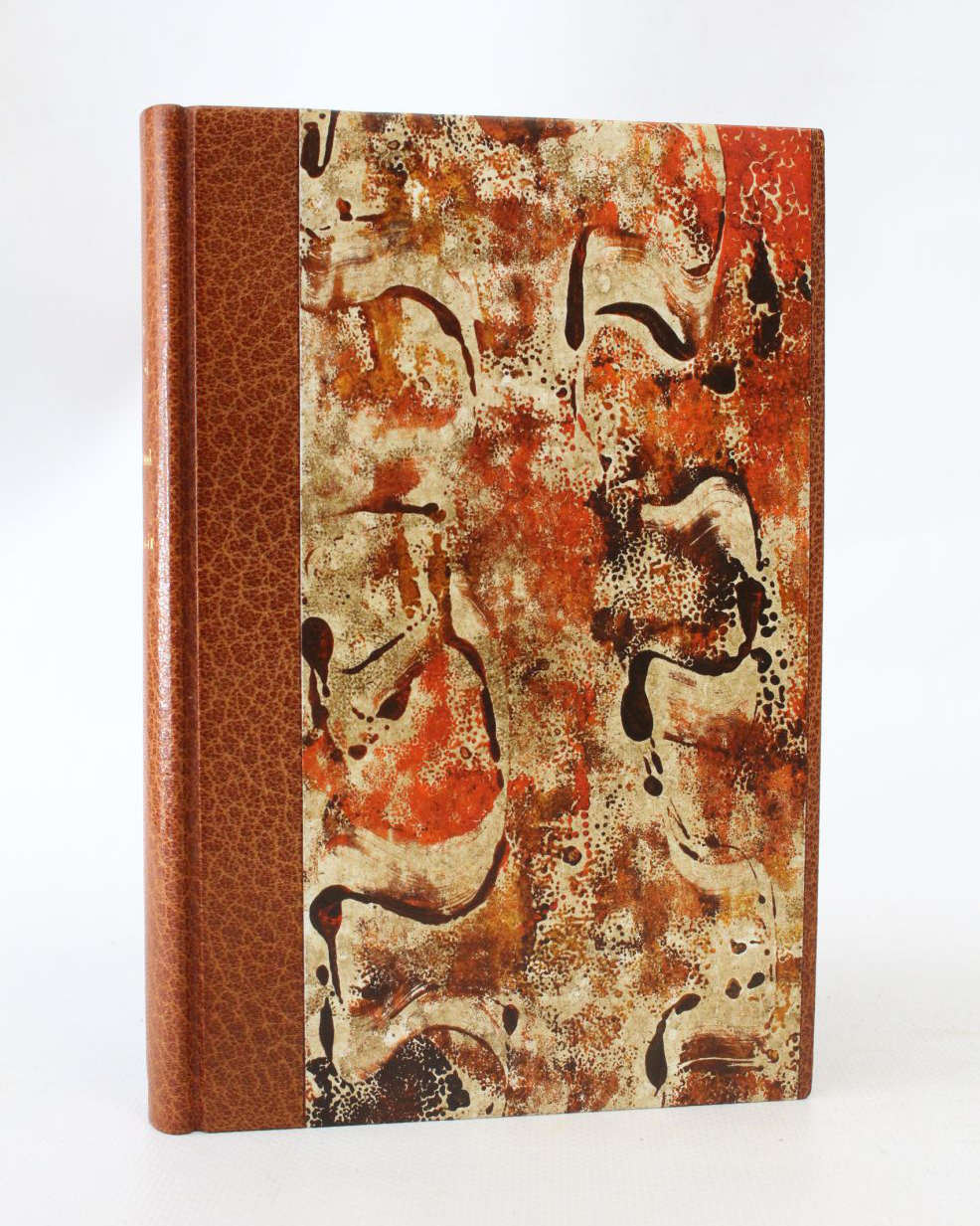 Reliure en demi chagrin vet bouteille à coins, dos lisse assombri orné de filets à froid, plats de papier marbré, gardes et contreplats de oeil-de-chat, reliure moderne signée Honnelaître.