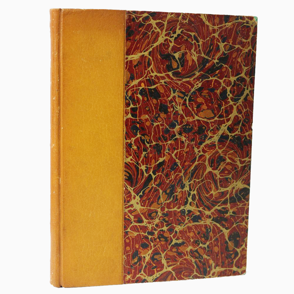 Reliure à la bradel en demi maroquin caramel, dos lisse orné de deux motifs typographiques dorés, coiffes légèrement frottées, couvertures conservées, tête dorée, reliure de l'époque signée Pottier.