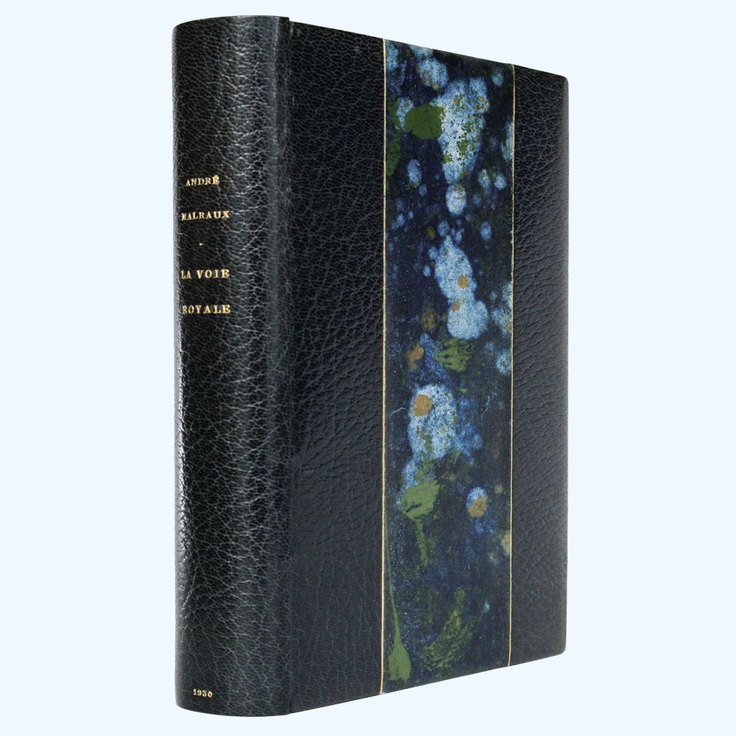 Reliure en demi maroquin bleu à bandes, dos lisse, date dorée en queue, filets dorés sur les plats de papier marbré, gardes et contreplats de papier vert amande, doubles couvertures et doubles dos conservés, tête dorée, reliure de l'époque signée de Robinson.