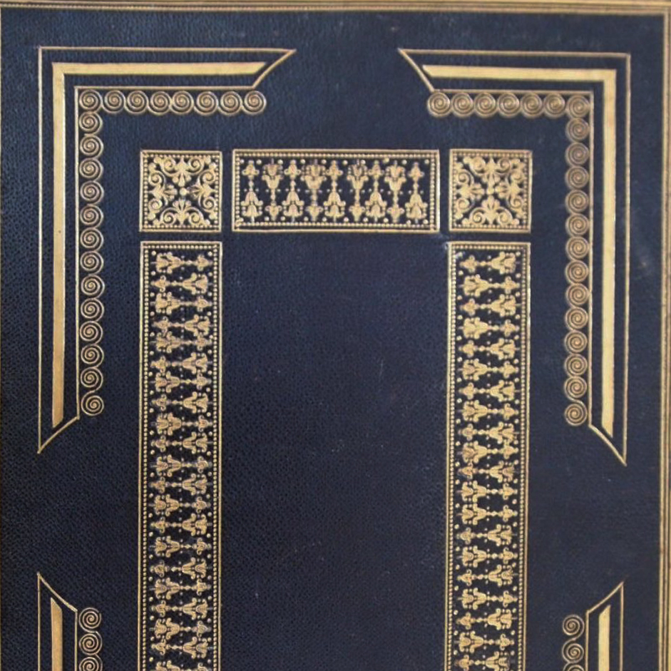 Reliure en plein chagrin marine d'époque signé Westley & Clark (London). Dos à faux nerfs richement orné. Plats très décoré de plusieurs encadrements successifs. Tranches dorées. Frottements en coiffes, mors, nerfs et coins. 2 coins légèrement repliés. Un cahier ressorti. Rousseurs éparses, notamment à l'endroit des serpentes.